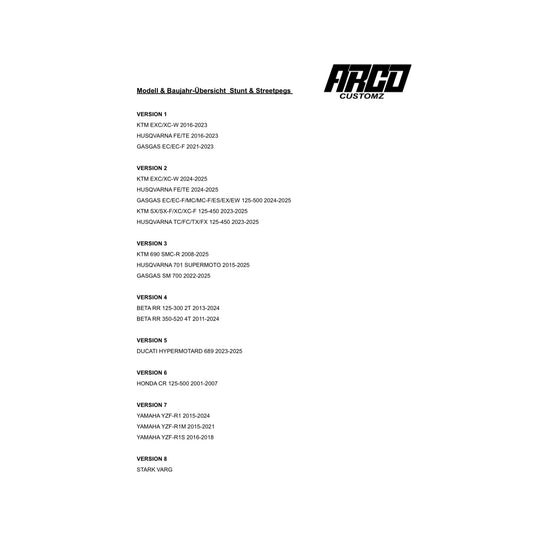 ARCO CUSTOMZ PEGS